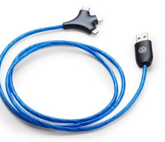 Câble de charge USB de type A vers Apple Lightning / USB de type C / micro USB, avec éclairage, collection Volkswagen