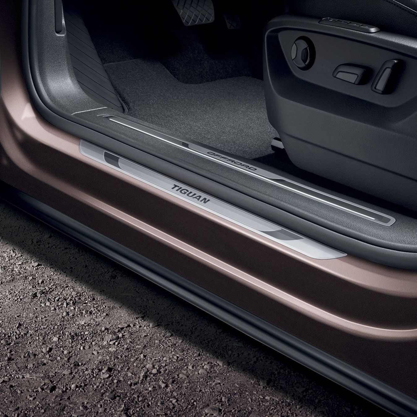 Ajoutez de l'élégance à votre Volkswagen avec ces seuils de porte pour Tiguan. Ce kit en aluminium contient 2 unités. Emplacement : portes avant Véhicule : modèle 5 portes Matière : acier brossé Couleur : argent Design avec inscription