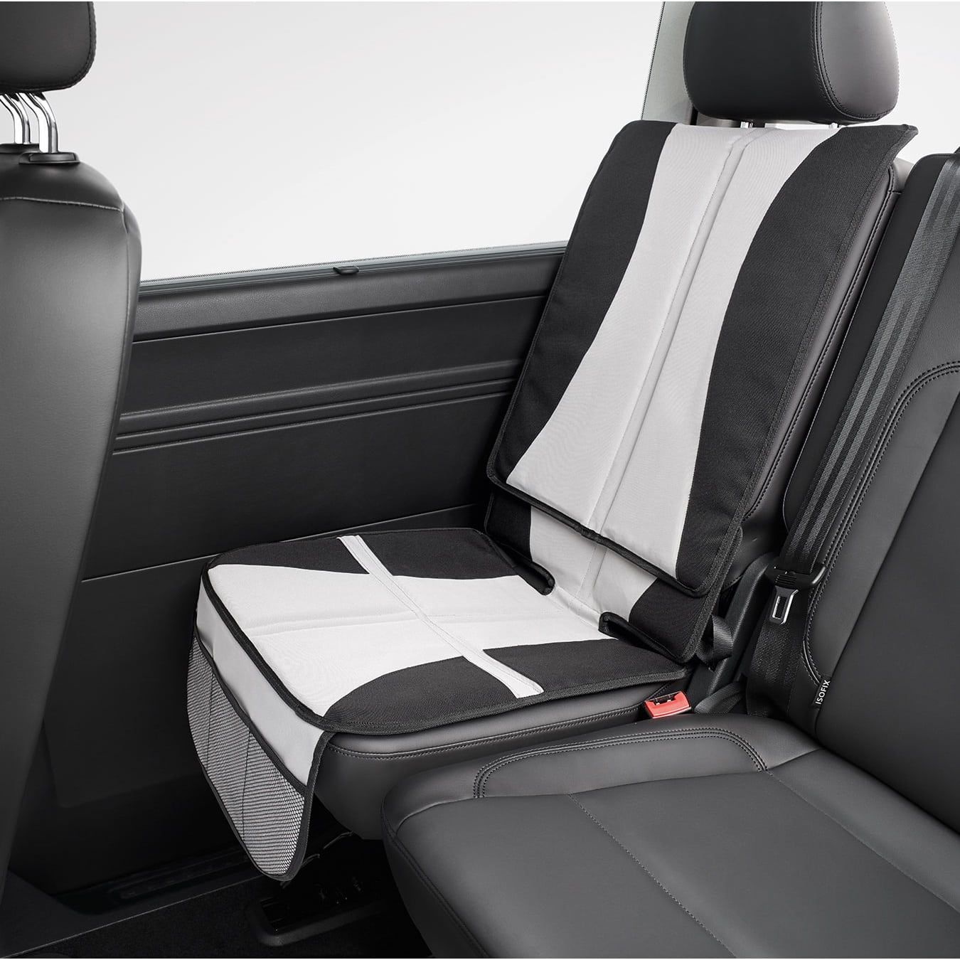La housse de protection pour siège enfant protège les sièges de votre véhicule de l'usure liée à l'installation de sièges enfants ; compatible ISOFIX Matière : Polyester ; Housse antidérapante, lavable ; 3 sacs filet intégrés pour ranger des petits ustensiles ; Compatible: tous véhicules dont ISOFIX