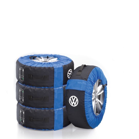 Protégez vos pneus lorsque vous les transportez ou les stockez avec la housse Volkswagen pour des roues jusqu'à 18''. Le lot de quatre housses de pneus des Accessoires d’Origine Volkswagen vous permet de prendre soin de vos roues lorsque vous les transportez et de préserver leur valeur en cas de stockage dans un garage ou dans une cave. Fabriquées en polyester de qualité supérieure, ces housses sont très résistantes. Elles sont munies d’une solide poignée, de poches extérieures pour ranger les boulons et d’un symbole permettant d’identifier aisément les différentes roues. 1 jeu de 4 unités. Matière : polyester Couleur : noir / bleu Dimensions : jusqu'à 18"