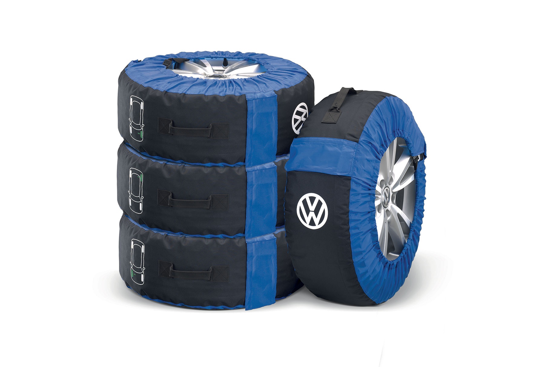 Protégez vos pneus lorsque vous les transportez ou les stockez avec la housse Volkswagen pour des roues jusqu'à 18''. Le lot de quatre housses de pneus des Accessoires d’Origine Volkswagen vous permet de prendre soin de vos roues lorsque vous les transportez et de préserver leur valeur en cas de stockage dans un garage ou dans une cave. Fabriquées en polyester de qualité supérieure, ces housses sont très résistantes. Elles sont munies d’une solide poignée, de poches extérieures pour ranger les boulons et d’un symbole permettant d’identifier aisément les différentes roues. 1 jeu de 4 unités. Matière : polyester Couleur : noir / bleu Dimensions : jusqu'à 18"