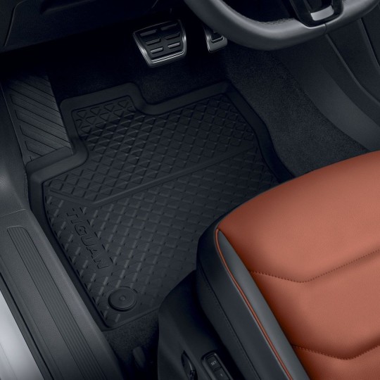 Grâce aux tapis de sol en caoutchouc d’origine Volkswagen, vous n’aurez plus de problèmes d’humidité ni de saleté dans votre véhicule. Ils sont taillés au millimètre près, antidérapants et se lavent facilement. L’inscription intégrée attire particulièrement l’attention.