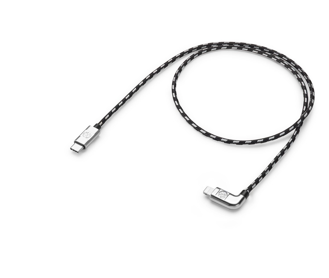 Le câble USB haut de gamme (USB-C sur Apple Lightning) a été spécialement conçu pour connecter un smartphone ou d'autres appareils mobiles au système d'infodivertissement de votre Volkswagen. Le design du câble est adapté de manière optimale à l'intérieur du véhicule. Longueur de câble de 70 cm. Le câble est enveloppé d'une gaine textile de haute qualité et dotés de connecteurs en métal chromé portant chacun le logo Volkswagen. Ce câble est idéal pour exploiter les fonctions telles que CarPlay dans AppConnect ; la recharge de l'équipement raccordé est bien sûr également disponible.