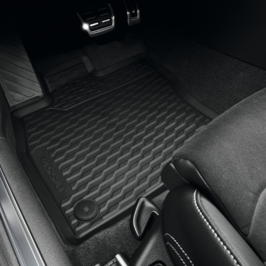 Protégez l'habitacle de votre Volkswagen avec ce jeu de 4 tapis (avant et arrière) en caoutchouc, résistants et sur mesure, siglés Passat. Jeu de 4 tapis avant/arrière. Matière : caoutchouc Couleur : noir Design : avec inscription Mode de fixation : système de bouton poussoir