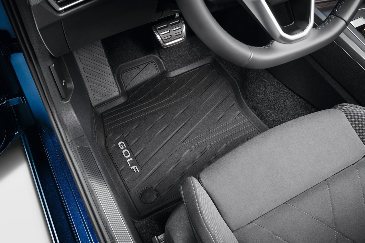 Protégez l'habitacle de votre Volkswagen avec ce jeu de 4 tapis (avant et arrière) en caoutchouc, résistants et sur mesure, siglés.