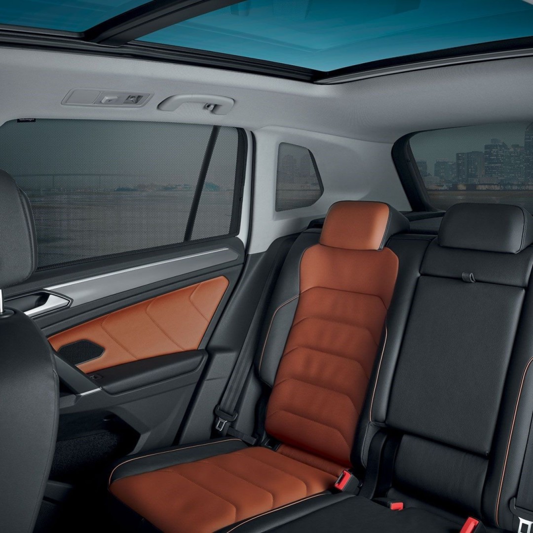 Protégez du soleil et des UV les occupants à l'arrière de votre Volkswagen avec ces pare-soleil sur mesure pour les vitres latérales et lunette arrière.  Permet l'ouverture normale des vitres. Kit de 5 unités pour un véhicule 4 portes. Matière : tissu en polyester Couleur : noir Compatible :  Tiguan 2016 Tiguan 2020