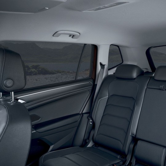Protégez du soleil et des UV les occupants à l'arrière de votre Volkswagen avec ces pare-soleil sur mesure pour les vitres latérales et lunette arrière.  Permet l'ouverture normale des vitres. Kit de 5 unités pour un véhicule 4 portes. Matière : tissu en polyester Couleur : noir Compatible : Tiguan Allspace depuis 2017