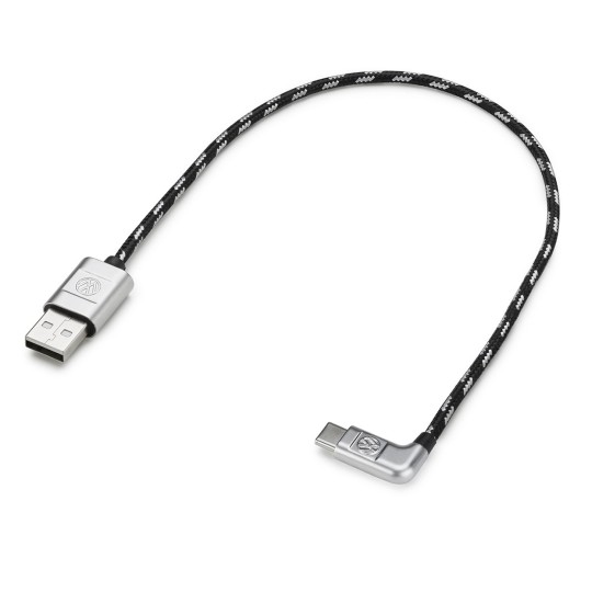 Rechargez votre smartphone et profitez pleinement d'AppConnect grâce à ce câble USB-C d'une taille idéale de 30 cm et très élégant avec ses connecteurs en métal chromés estampillés Volkswagen Interface : USB-A sur USB-C coudé Couleur : noir / argent Dimensions : longueur 30 cm